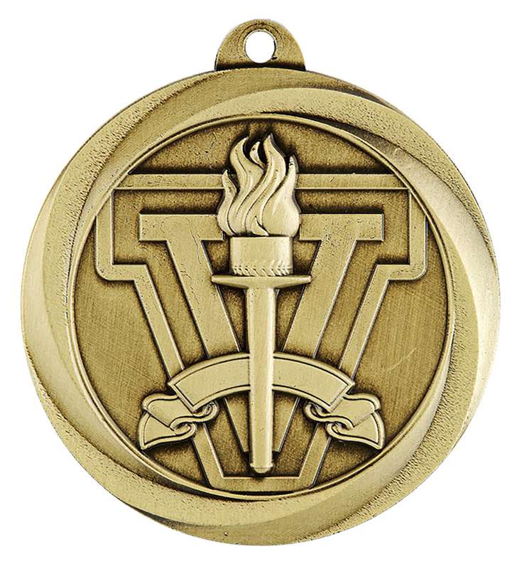 Econo Series of medals are perfect for all budgets and cover wide range of sports and activities. Achievement style medal features an iconic V-design theme and victory torch. Available in gold, silver and bronze - panel for engraving on back of each medal. Ribbons available in all colours.