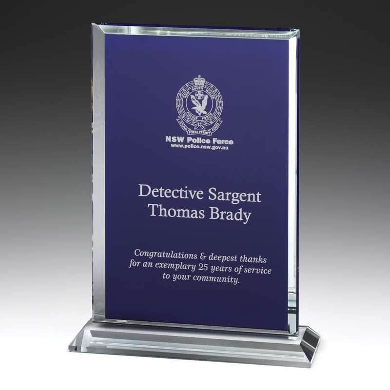 The Glass Blue Billboard award series presents a modern, commanding design and the blue panel element of the award highlights your engraving requirements. The impressive design, and vibrant blue colour, may be perfectly suited to your awards event. Available in 2 sizes - supplied in Gift Box.
